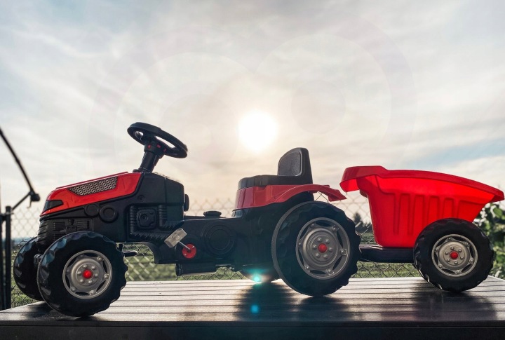 Педальный трактор MAX с красным прицепом — идеальная игрушка, чтобы начать свое приключение с педальным транспортом.