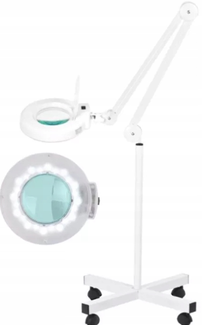 Лампа-лупа 5 діоптрій, світлодіодна лампа з регульованою інтенсивністю світла на чотириручному штативі.