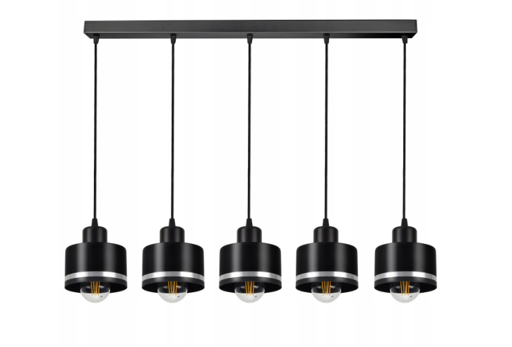 Підвісний світильник Luxolar 383 E27 оснащений п`ятьма регульованими по висоті металевими плафонами чорного кольору. Стиль лофт - відмінно підійде для кухні, їдальні, вітальні.