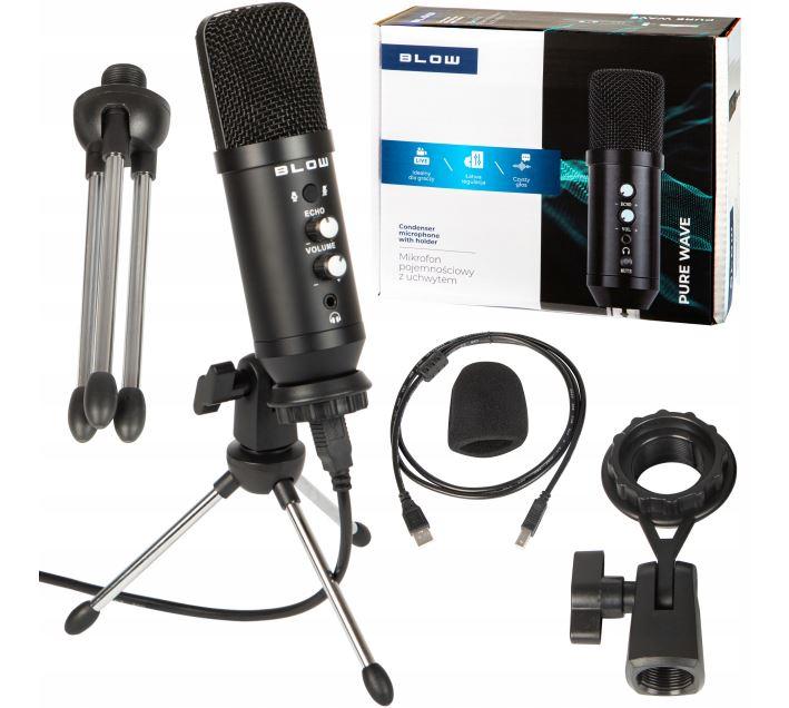 Якісний студійний мікрофон BLOW з повною комплектацією, що дозволяє одразу використовувати. Завдяки підключенню через USB-інтерфейс мікрофон ідеально підходить для комп'ютерів або ноутбуків для запису різних типів звуків, стрим та інших цілей.