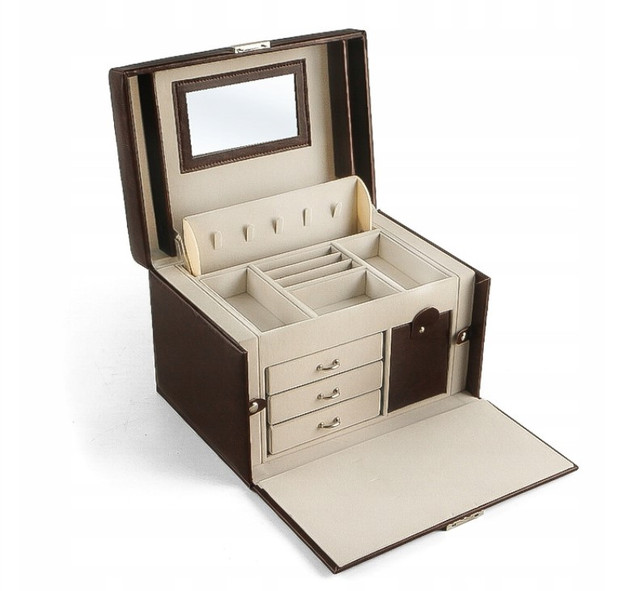 Коричневий органайзер для ювелірних виробів з дзеркалом та висувними ящиками