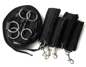 - Налаштування цього набору для обмеження відбувається швидко та легко, не потребуючи складної установки. Регульовані ремені можна надійно прикріпити до каркасу ліжка, забезпечуючи стабільну та безпечну систему обмеження. Манжети також легко надягати та знімати, забезпечуючи безпроблемне використання під час інтимних моментів.
